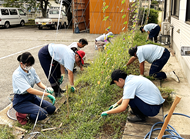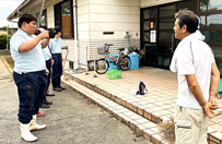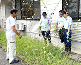 9月19日(水)清掃美化班の5人で宝立公民館の花壇の除草に行ってきました。公民館は避難所になっていて、現在も22名の方が生活をしていらっしゃいます。公民館のMさんから「朝顔をまいたけどほったらかしになっていて…」と花壇の説明があり、その周辺の除草を依頼されました。公民館長さんやMさんも参加して花壇の朝顔のツルを取らないよう気をつけながら除草作業をしました。