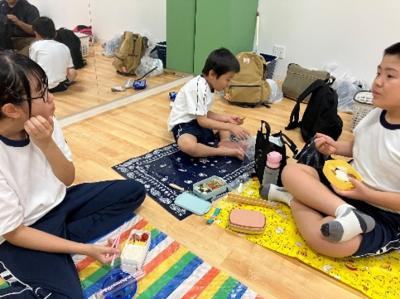 昼食は電気などが使えない状況を想定して、子どもたちそれぞれの避難バックに入っている非常食を食べる体験を行いました。「味が薄いー」「カレー美味しかったです」など、例年取り組んでいることもあってか、和気あいあいと楽しそうな雰囲気で食事をする様子が見られました。