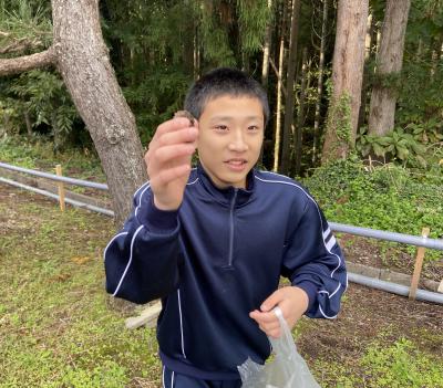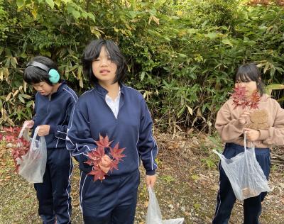 写真は、生活単元学習「秋を楽しもう」で飯田高校の校舎周りにある秋を探しました。栗のとげとげに驚いたり、赤や黄色に染まった落ち葉を拾って喜んだりする姿が見られました。