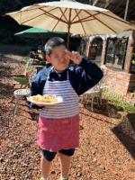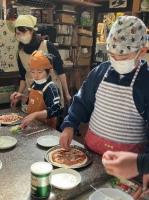 沢山遊んでお腹が空いた後は、待ちに待ったピザ作り体験!生地を大きく伸ばし、ソースを塗り、自分の好きな具を選んでトッピングしました。自分で作ったピザは格別だったようで、どの子も「おいしい~!」とニコニコ頬張っていました。