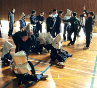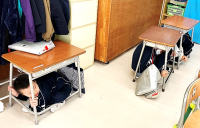珠洲分校が飯田高校に移転してから、初めての避難訓練でした。机の下では「さる」、それ以外では「だんごむし」など、これまで学習してきた避難動作を“自分たちでできる”を目標に取り組んでおり、訓練放送を聞いて素早く動作をとることができる子どもたちが増えてきました。