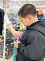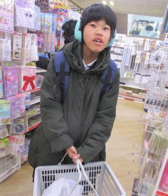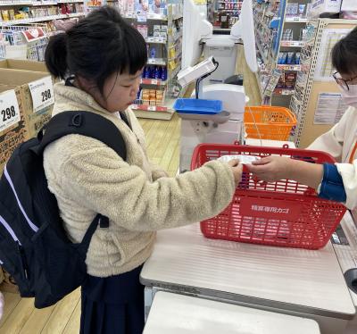 クスリのアオキ宇出津店とアルプに買い物学習に行ってきました。クスリのアオキでは、写真などを手掛かりに家の人から頼まれた物を購入しました。アルプでは、学校生活で使うハンカチか靴下のどちらか一つを買ってくることになっており、じっくり考え、それぞれ気に入ったものを購入することができました。