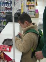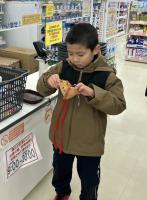 小学部で「マツモトキヨシ珠洲店」に買い物学習に行きました。12月4日は、おうちの人に頼まれたものを、6日は、自分の好きなお菓子を1つ選んで買いました。学校に帰ってから自分で買ったお菓子を食べました。家に帰ってお菓子の残りを家族にもあげた児童もいたようです。お店で実際に物を買うという経験ができて良かったです。