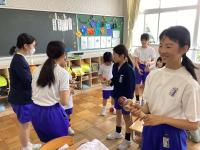 2025年9月4日 14時00分9月4日(木)には、5年生が稲刈り体験を行いました。春に田植えをした苗が、庄町寺井さんのお世話により、立派な稲に成長しました。