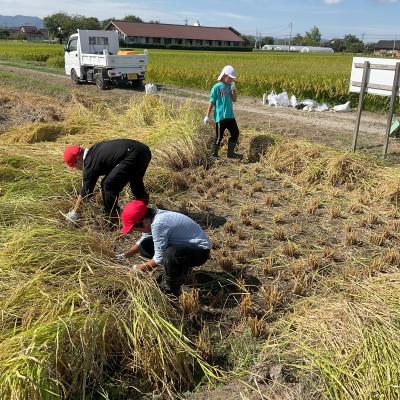 当日は、大変な暑さのため、とても短い時間での稲刈り体験でしたが、すべて手作業で行っていた稲刈りの苦労を知る貴重な体験となったようです。これまでたくさんのお世話をしてくださった寺井さんには、大変感謝しております。ありがとうございました!