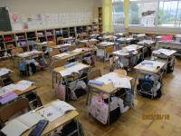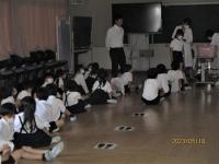 昨日と違い、今日は雨模様で少し肌寒い1日になりました。全国各地で地震が起きています。さらには、能登地方で地震が頻発しています。私たちの野々市市でもいつ地震が発生してもおかしくない状況であります。そのため3時間目に地震の避難訓練を開催しました。しっかり放送を聞き、机の下に入りしっかり頭を隠す。訓練終了後には、地震に関する動画を見て理解を深めました。