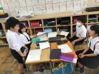 4年生は総合的な学習の一環でうさぎやカメ、金魚のお世話をしてくれています。班で意見をまとめて発表していました。
