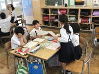 3年生の国語「もっと知りたい、友だちのこと」では、友だちの話を聞きながら、もっと知りたいことについて、いろいろ質問して、友だちからたくさんのお話を引き出す3分間トークの様子です。とても和やかな雰囲気で、みんないい笑顔でした。