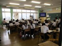 予報通り暑い日になりましたが、校舎内はここちよい風が吹いていました。2年生体育では、友だちの様子をICTを活用して撮影して完成度を高めていました。少し暗いものは、1年生の眼科検診の様子です。しっかり並んで成長の跡が見えます。「暗い~」「怖い」の声も聞こえましたがスムーズに終えることができました。