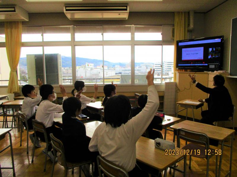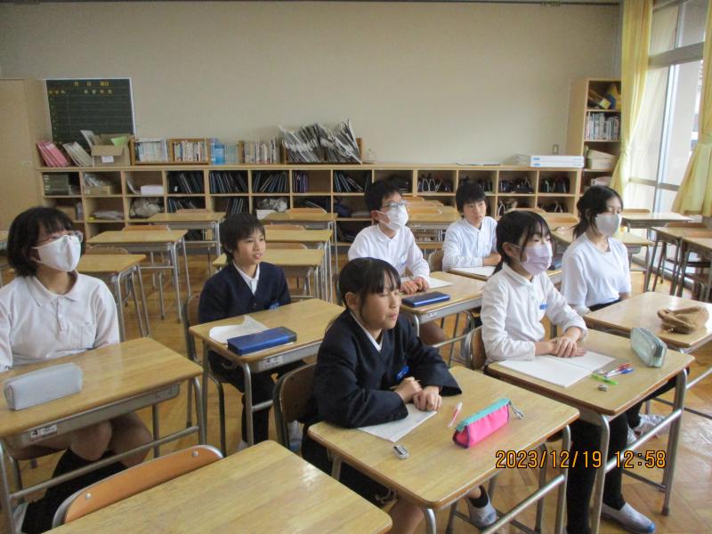 昨日の昼休みの様子です。オンラインで他校や市教育委員会とオンラインで会議をしていました。5年生の児童会の皆さんです。