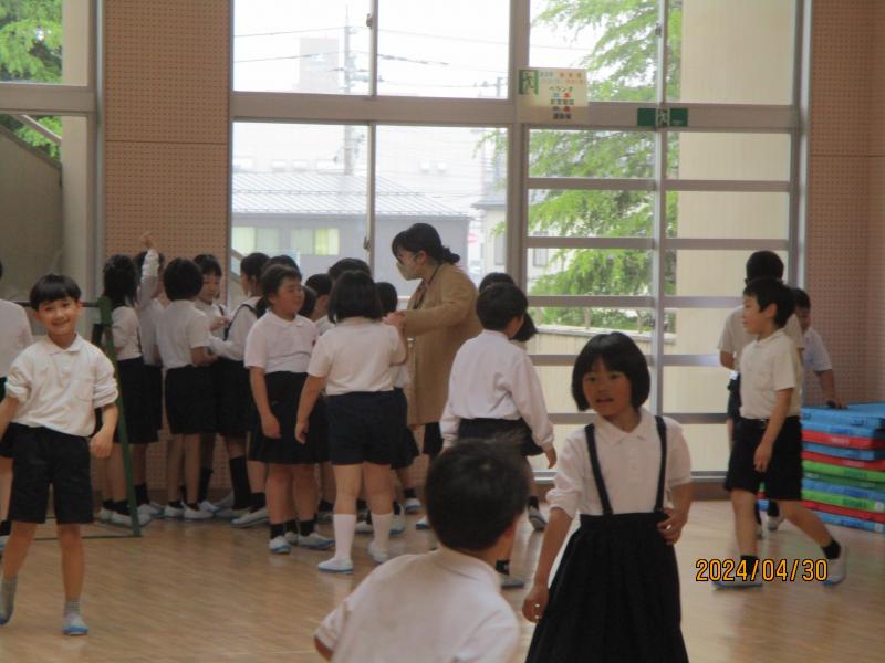 5年の体育です。楽しそうに仲間作り活動をしていました。