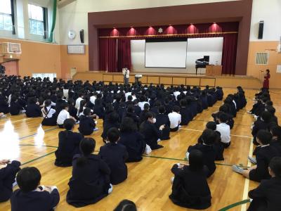校長先生から「感謝」の言葉についてのお話がありました。ありがとうを伝えると、広がっていく魔法の言葉であることを話しました。「ありがとう」が学級・学校全体に広がり、あたたかい学校を目指していきましょう。