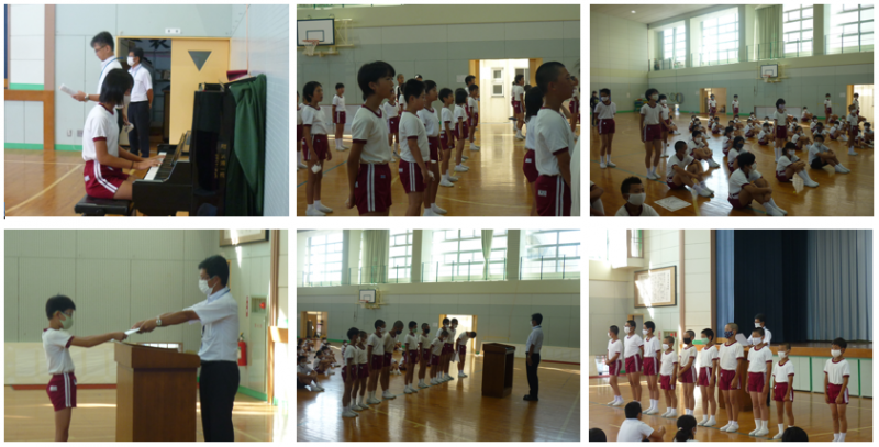 6年鼠田さんの伴奏で、校歌を歌いました。全校のみんなで校歌を歌う素晴らしさを感じる時間でした。