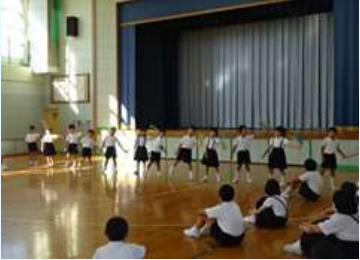 2限目はリズム(全校ダンス)練習です。前半は体育館で確認し、後半は運動場で通し練習をしました。みんな、笑顔いっぱいに演技できていました。