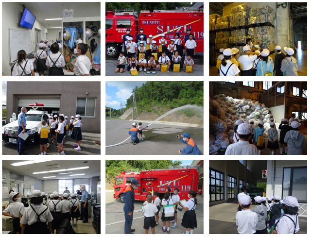 9/28、4年生は午前から、3年生は午後から施設めぐりに出かけました。4年生は午前中、能登町上町にある奥能登クリーンセンターに出かけて、ごみが処理される様子やその工夫等について学びました。午後からは、3・4年生が一緒に珠洲警察署・消防署を訪問し、施設内の様子を見学しました。4年生にとっては初めてではない施設もありましたが、また新たな発見ができました。お世話になった皆様、本当にありがとうございました。