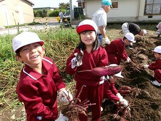 1年生が、地域の方々のご協力で、サツマイモ掘りをしました。大きくて、形の良い、サツマイモが沢山とれました。様々な準備、ご配慮をしていただいたおかげで、子供達は、すごく楽しめ、喜んでいました。ご協力いただいた皆様方、本当にありがとうございました。