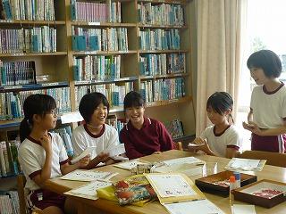 学校図書館司書さんが、物語ゲームをしてくれました。参加者は、5枚のカードをもらい、それぞれに、①「いつ(例:「今日」」②「誰が(例:「ヒーローが」)」③「どこで(例:「宇宙で」)」④(「何を」(例:「プリンを」)⑤「どうした(:例「投げた」)」を書きます。それを内容毎に一旦集め、シャッフルして、①~⑤の順番に読むと、何ともユニークな物語が出来ます!参加した子供達は大爆笑!「笑いの秋」でした。
