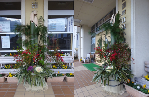 今年は、学校玄関に門松を置きました。直学童野球クラブ監督の高井正裕様他、保護者・地域の皆様のご協力で作っていただきました。新学期を迎える児童が、この門松を見て、新年に向けた思いを新たにしてくれることと思います。本当にありがとうございました。(12日(日)まで飾っておく予定です。)