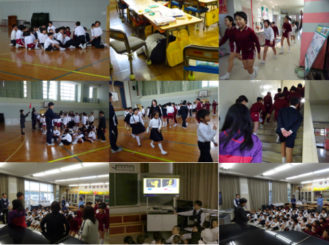 18日の昼休みに地震・津波が来るという想定で避難訓練を行いました。昼休みなので,それぞれ遊んでいる場所からの避難でした。一人ひとりがその場で考えて,安全行動・避難行動をとることが今回の目標となりました。地震の後一度体育館へ全員非難し、その後,津波警報を受けて3階音楽室へと移動しました。児童はきびきびと避難行動をとっていました。