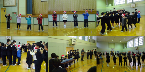今回は、1年生が「赤鼻のトナカイ」を歌ってくれました。お揃いの赤いサンタの帽子をかぶって、手話付きで寒さをふきとばすように元気に楽しく歌ってくれました。その後6年生の生演奏に合わせてみんなで輪になって歌うことができ、楽しい時間となりました。
