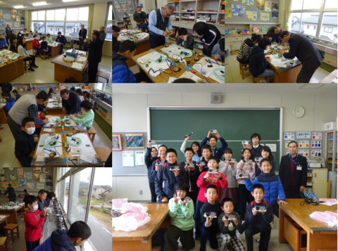 26日の午前9時より、本校図工室にて子どもラジオ作り教室を行いました。日本アマチュア無線連盟石川県支部のみなさんのご協力で行いました。4〜6年生の希望者13人と保護者、教員が参加しました。