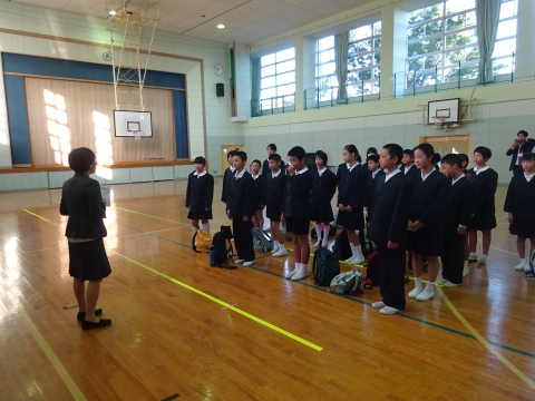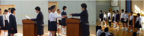 9日(水)に全校朝会を行い、後期児童会の任命式を行いました。