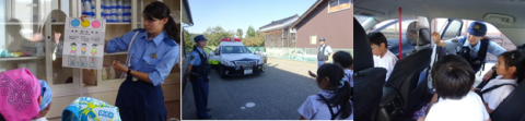27日(金)の生活の時間に交通安全を学ぶため、直公民館の方やお巡りさんと一緒に様々な活動を行いました。