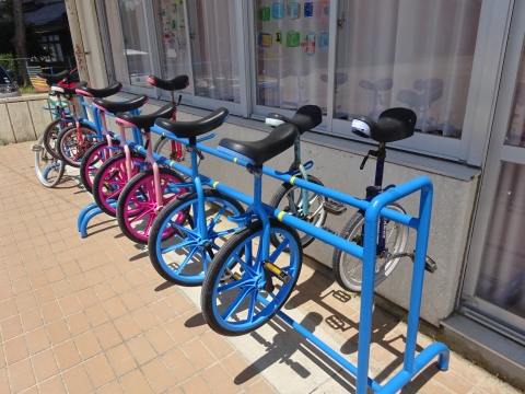 ところで、校務員さんが一輪車置き台をきれいに塗りなおしてくださいました。