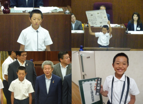 本校からは6年の晴一郎さんが参加しました。【市民図書館の有効活用】について、提案・質問しました。