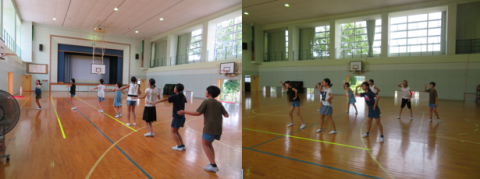 夏休みに入りミュージッククラブ8名は、8月11日に開かれる直地区盆踊りに向けて、暑い体育館で、ほぼ毎日練習に取り組んでいます。