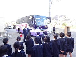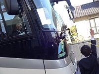 手をしっかり挙げることを学びました。また、バスに搭載されている安全装置の