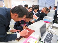 給食は、おはぎ給食です。1人3個ずついただいたのですが、たくさんの児童が“お代わり”をしていました。中には、10個もお代わりをした児童もいました。児童から「自分たちで作ったから、とてもおいしく感じた。」という感想が聞かれました。学校の帰りに、お米づくり等でお世話になった地域の方々におはぎを配り、感謝の気持ちを伝えました。