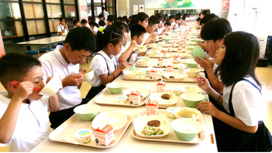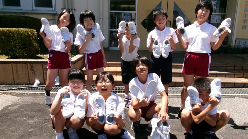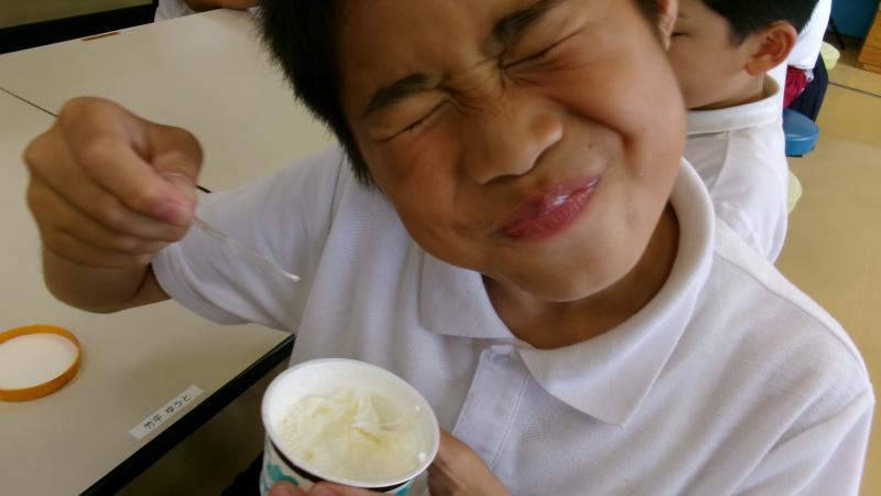 5年生が家庭科の学習で、外履きズックを手洗いしました。一生懸命洗って、見違える程きれいになりました。この学習をいかして、夏休み中に、内履きズックを洗う計画もあるようです。また、昨年に引き続き、全校にジェラートの寄付をいただきました。とても美味しい顔が見れました。