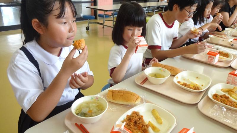 体力向上に向け、講師の先生をお招きして、ラダー運動や、なわとび運動に取り組みました。様々な動きを子供達は、楽しんでいました。また、今日の給食は万博給食。世界の色んな国のメニューがでます。今回はアメリカ。「スロッピー・ジョー」というミートソースをパンにはさんだ料理が出ました。とても美味しかったようです!