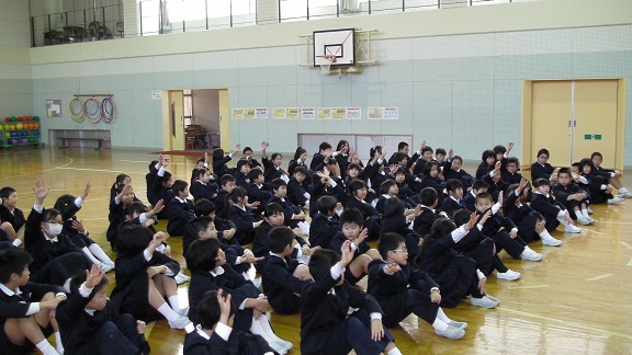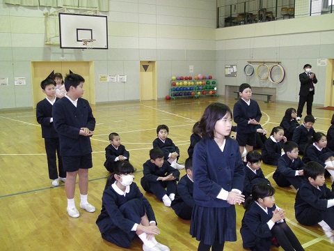 2月15日(月)に児童集会がありました。全校で卒業式に歌う「世界が一つになるまでに」を合唱しました。低・高音部がけんかをせず,きれいにハモっていました。