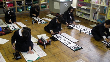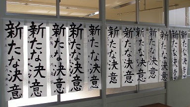 始業式の後,全校で書き初め大会を行いました。どの学年も,集中して取り組んでいました。中でも,6年生の作品は目を見張るものがありました。どの子も素直で生き生きと書いてあり感動しました。