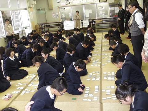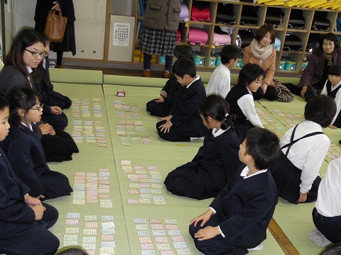 今日は,直小学校伝統の「百人一首大会」でした。冬休みの間にたくさん覚えてきた児童もいて,白熱した取組もありました。1年生から6年生までが,日本の伝統文化にふれるよい時間でした。