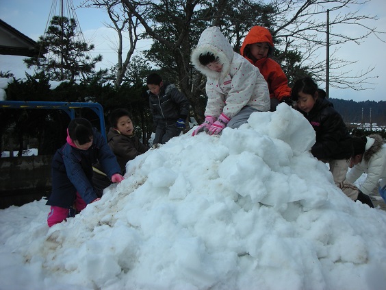 1/27(水)に1年生がかまくらを作りました。自分たちで会議を開き,どんな遊びがいいのか。持ち物はどうすればいいのか。など,担任に頼ることなく相談をして決めたそうです。