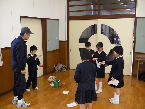 みんな夢中になってチャレンジしていました。上手にできたときの笑顔と歓声は,寒さを吹き飛ばしてくれます。長生会の皆さんありがとうございました。