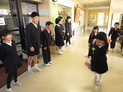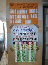 今回は、期間こそ教師が設定したものの、あいさつに立つ子はあくまで希望者です。一週間前から曜日ごとに希望者を募りました。最大6名までにしましたが、どの曜日も6名以上の希望者があり、厳正なる抽選であいさつ運動の参加者を決めました。上の写真の白い紙は、希望してくれた子どもたちです。茶色の紙に貼ってあるのは、残念ながら抽選で漏れた子です。 自主的にあいさつ運動をしようという子が、たくさんいたことに驚きました。