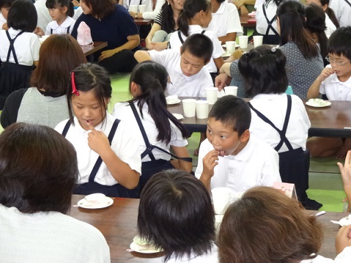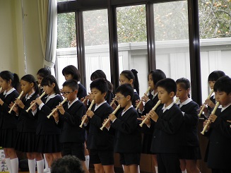 10月12日(日)に,敬老会が直公民館で行われました。直小学校からは,3・4年生が合唱や笛の演奏を行いました。お年寄りの皆さんからあたたかい拍手をたくさん頂きました。ありがとうございます。