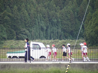 10月14日(水)に,地震・津波を想定した避難訓練を行いました。今年は,二次避難として,全校児童全員が緑丘中へ走って避難しました。10分以内が目標でしたが,9分42秒で避難することが出来ました。
