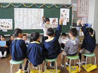 11/28(金)に1年生が生活科の学習の時間に,保育所の園児5名を招待しました。