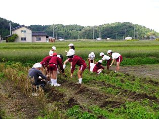 10/16(木)の午後から,6年生が大納言小豆の収穫をしました。ぷっくり成長した小豆がたくさん収穫できました。この後,小豆を干してさやから出して,おいしいあんことなりおはぎとしていただくことになります。とても楽しみです。