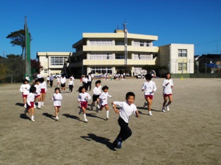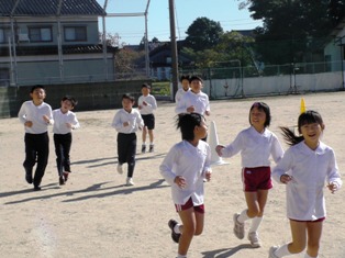 マラソン運動が始まって1ヶ月。児童は,自分の目当て達成に向けてがんばって走っています。200周をこした児童もいます。今日は,雲一つない青空。気持ちよく走ることができました。
