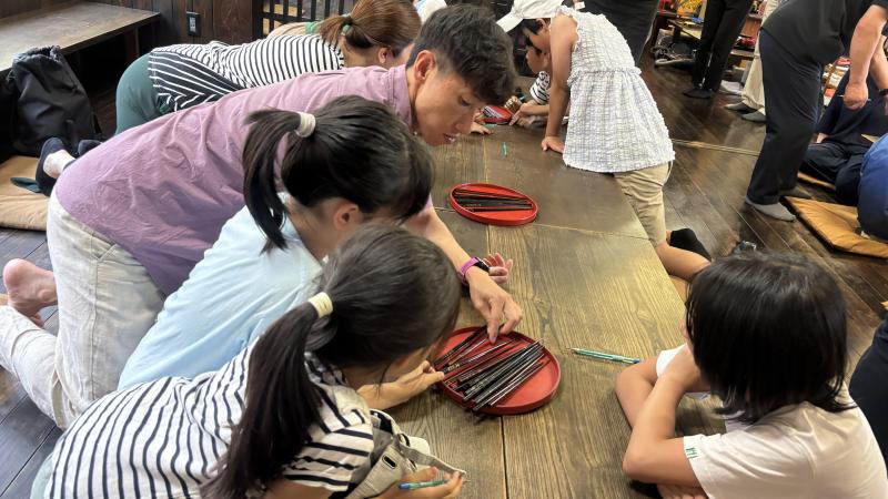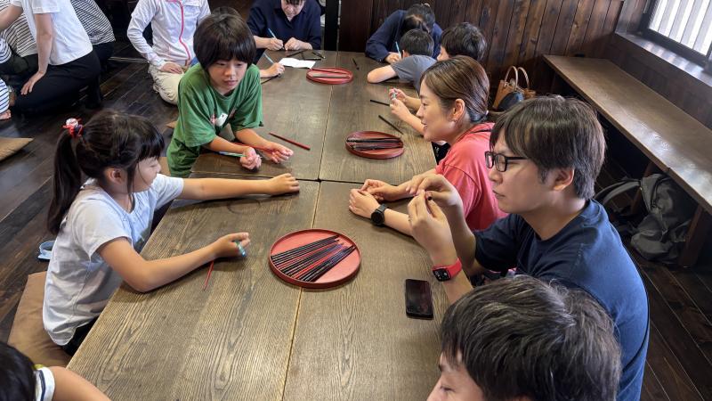 5年生の親子行事がありました。今年は、輪島市の「輪島工房長屋」で、沈金MY箸づくりでした。皆説明に真剣に聞き入っていました。それぞれの思いがこもったデザインで、思い出に残る素敵な箸が出来たようです。