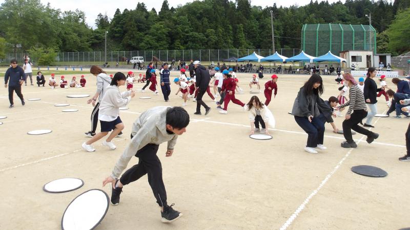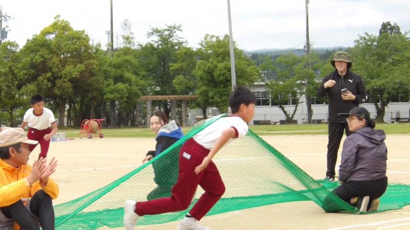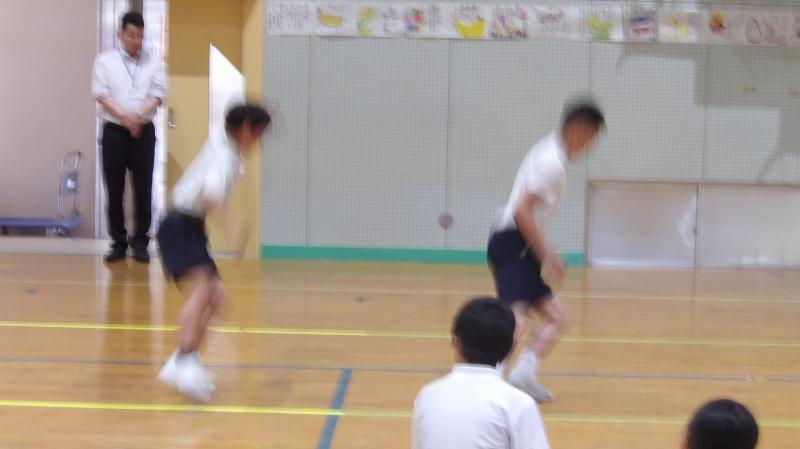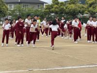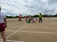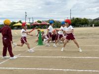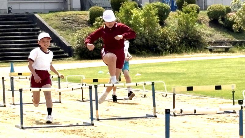 障害物リレーでは、1,2年生はケンケンとじゃんけんで、3,4年生はさらになわとびとあみくぐりで、5,6年生は、さらにハードルとバスケットボールでコーンを1周しました。みんな、思いっきり走ったりしていて、楽しそうでした。ぼくも楽しかったです。