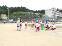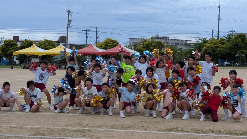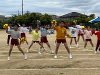 ダンスは、全校みんなで協力して取り組む種目の一つです。高学年は「スターマイン」、低学年は「APT」、全校でミセスグリーンアップルの「青と夏」をおどりました。ダンスは、いろんな種目の後半にあるので、みんな疲れていたけど、最後まで大きく、笑顔でおどっていました。