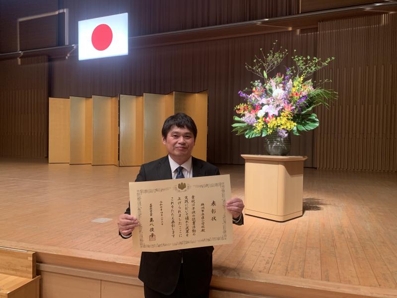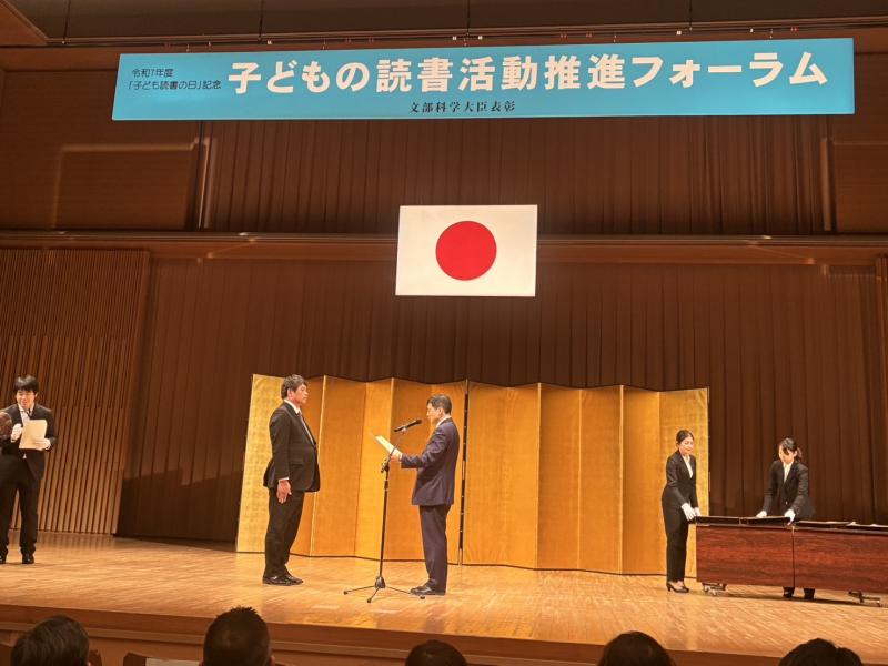 読書活動優秀実践校の表彰をいただきました。これまでの取組が評価され、大変嬉しく思います。これを機に、更に活動を推進していきたいと思います。