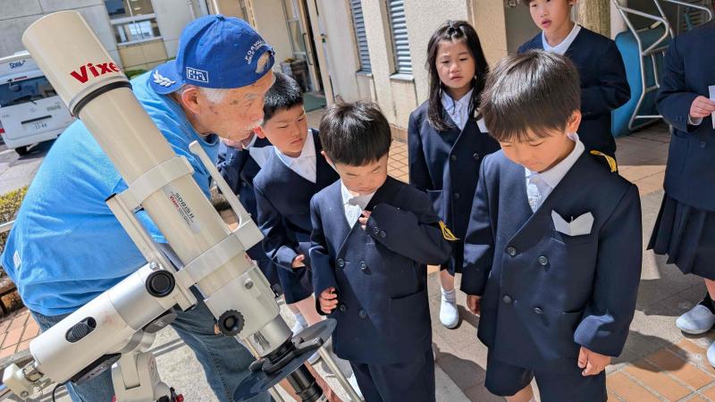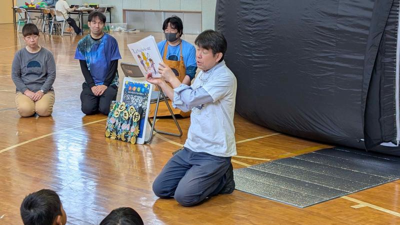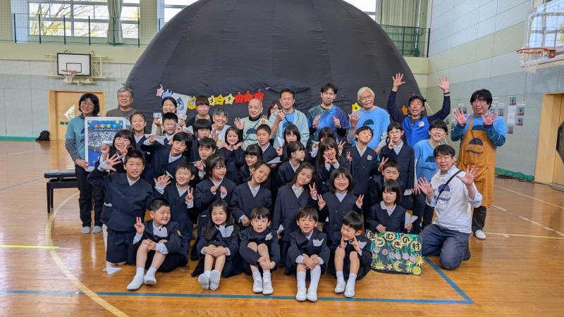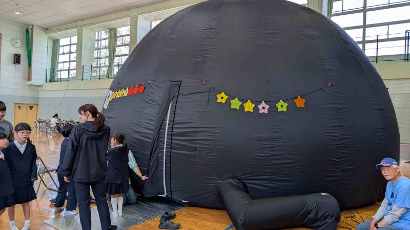直小にプラネタリウムが来てくれました!皆、星空の世界に吸い込まれていきました!星空以外にも、とってもよく飛ぶ紙飛行機の作り方を教えてくれたり、太陽の黒点を望遠鏡で見せてくれたり、本当に楽しい時間をプレゼントしていただきました!